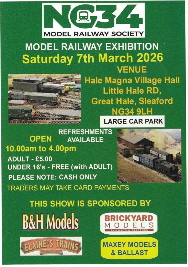 NG34 Model Railway Society’s first ever show is set to take place on Saturday, March 8th at Cranwell Village Hall from 10am – 4pm. We’re really excited for this to take place and it’s the culmination of the hard work and dedication of our events team. There will be 13 layouts, 2 traders, 3 demonstrations, along with refreshments and a… Read more: Sleaford Model Railway Exhibition 2025 - Club Open Day